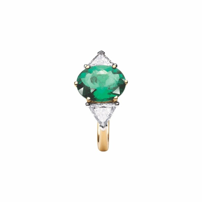 Prestige Bague B&F Prestige Renouveau en platine, or jaune, émeraude et diamants