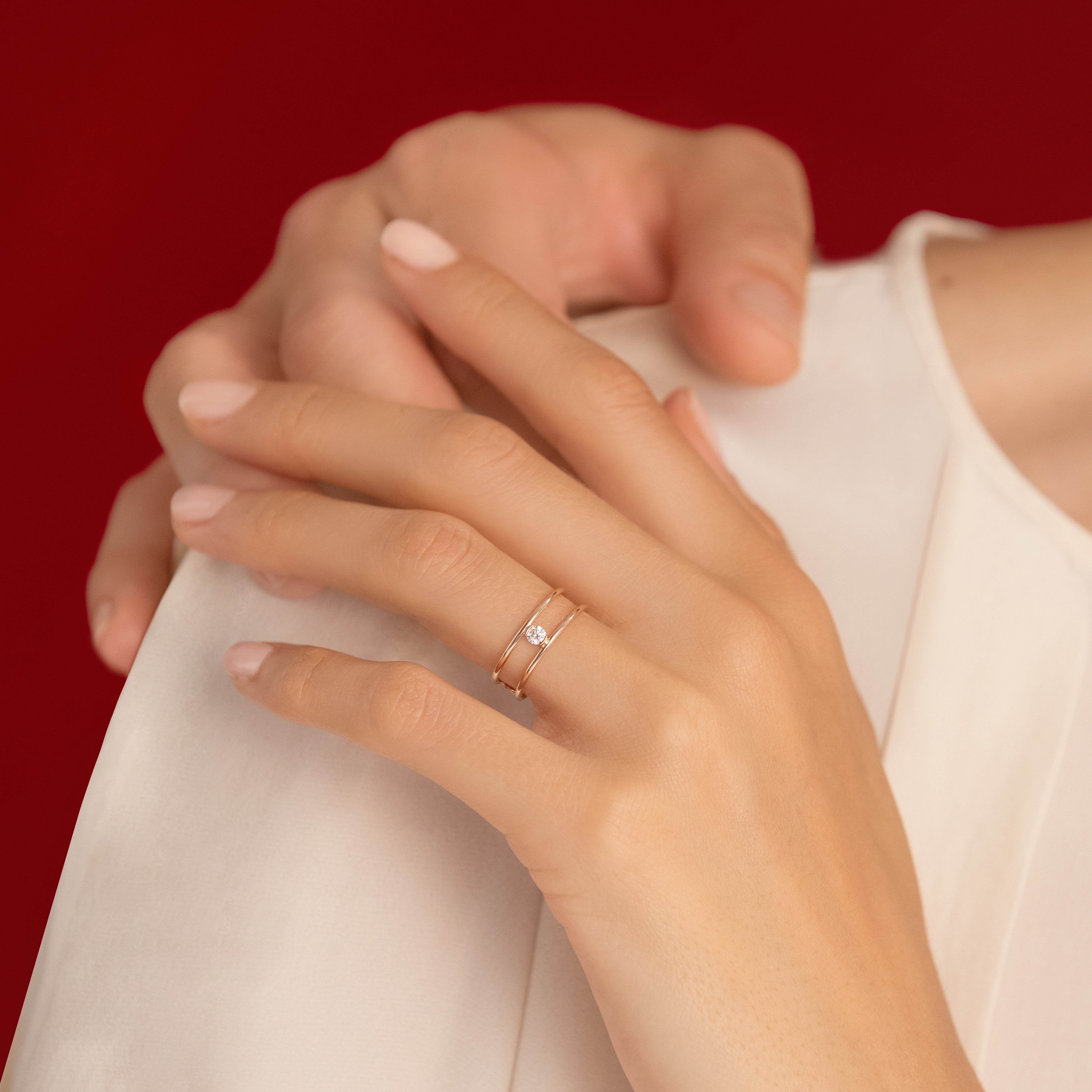 HULA HOOP Bague La Brune & La Blonde HULA HOOP Trilogie en or rose, saphirs roses et diamant